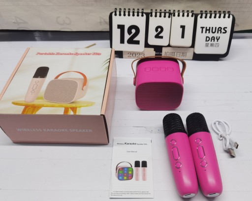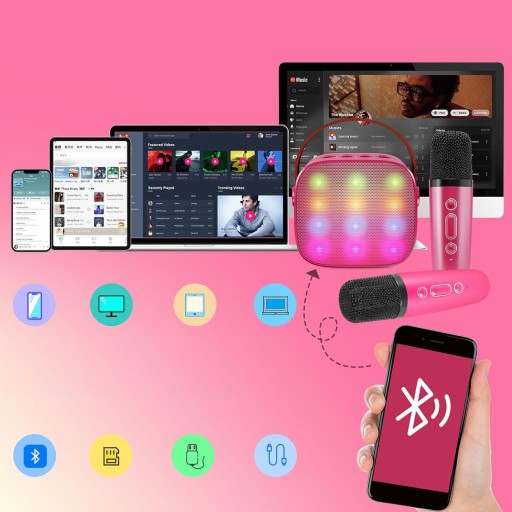 MINI ZESTAW DO KARAOKE Z 2 MIKROFONAMI BEZPRZEWODOWYMI I PRZENOŚNYM GŁOŚNIKIEM BLUETOOTH