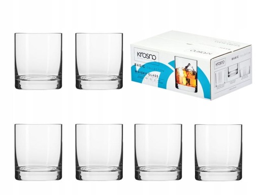 Komplet 6 niskich szklanek do whisky o pojemności 250 ml z serii Basic firmy Krosno. Ich cylindryczny kształt pomaga uwydatnić pełny smak i aromat trunku. Wysoka przejrzystość szkła pięknie wyeksponuje barwę whisky. Szklanki są stabilne i wygodne w użyciu. Jakość szkła pozwala na bezpieczne używanie ich w zmywarce.