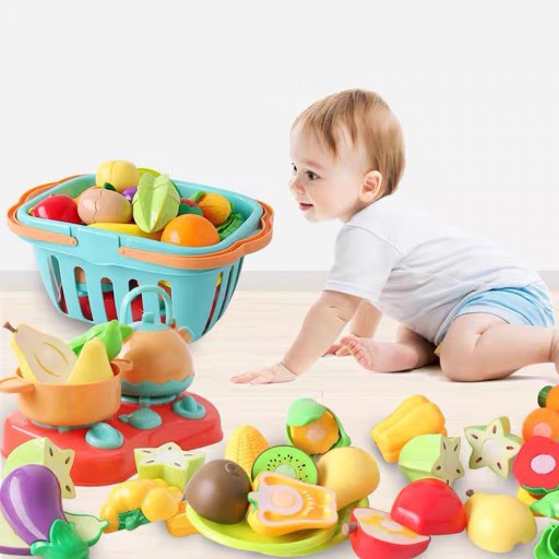 НАБОР ИГРУШЕК ДЛЯ РЕЗКИ ФРУКТОВ ОВОЩЕЙ КУХНЯ ДЕТСКАЯ С ПОСУДКОЙ И НОЖАМИ