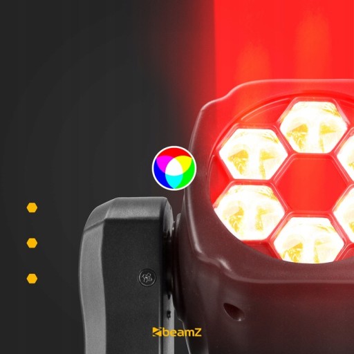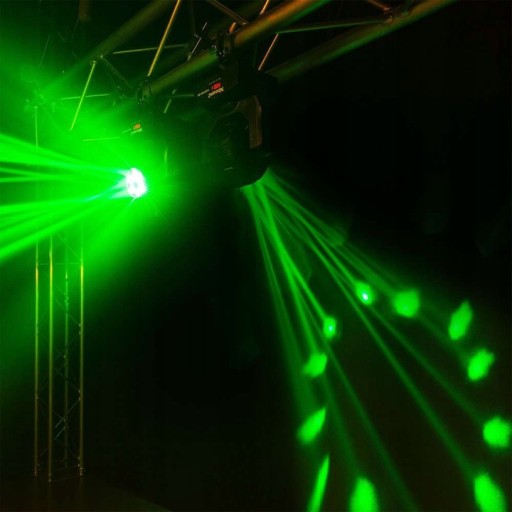 Z ruchomą głową BeamZ Panther 80 możesz tworzyć najpiękniejsze pokazy świetlne. Wyposażona jest w 6 diod LED zamontowanych na dysku. Ponieważ ten dysk może obracać się w nieskończoność w obu kierunkach, Panther 80 zapewnia wyjątkowy i piękny efekt. Ruchoma głowa posiada również 6 diod LED o mocy 12W na diodę, co zapewnia bardzo wysoką moc świetlną, są to diody RGBW, dzięki czemu ruchoma głowa może wytwarzać szeroką gamę kolorów, w tym kolory pastelowe.