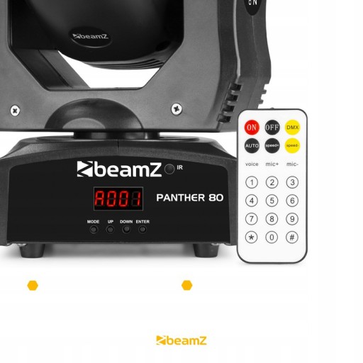 Panther 80 można obsługiwać na kilka sposobów. Z pomocą dołączonego pilota wszystko staje się bardzo proste i każdy może nim sterować. Ponadto ruchoma głowa może działać na jednym z wstępnie zaprogramowanych programów do wyboru lub reagować na dźwięk za pomocą wbudowanego mikrofonu. Dla bardziej doświadczonych użytkowników Panther 80 może być również sterowany przez DMX przez 12 kanałów. Dlatego Panther 80 oferuje wystarczające opcje zarówno dla początkujących, jak i zaawansowanych użytkowników.