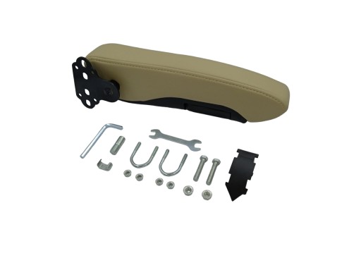 Podłokietnik uniwersalny samochodowy - Lewy Beżowy - przykręcany do fotela - do busa, do kampera, z obszyciem ze sztucznej skóry Premium