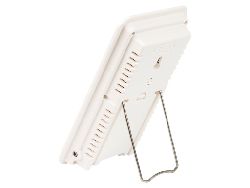 Z tyłu stacji pogody została wmontowana delikatna podpórka oraz przewód o długości około 200 cm zakończony sondą pomiarową - to wszystko pozwoli na swobodne ustawienie stacji według aktualnych potrzeb oraz szybkie dostosowanie do miejsca w którym aktualnie chcemy dokonywać pomiarów temperatury oraz wilgotności. Wbudowane przyciski na przednim panelu ułatwią obsługę oraz zmianę ustawień.