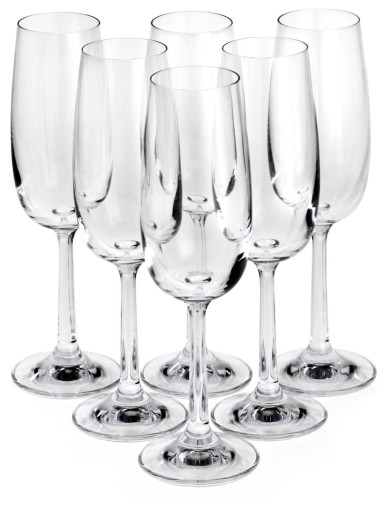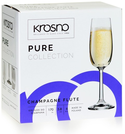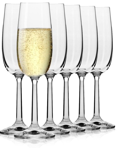 Zestaw 6 kieliszków do szampana firmy Krosno. Kieliszki wykonano z wysokiej jakości szkła - są trwałe i odporne na obtłuczenia.