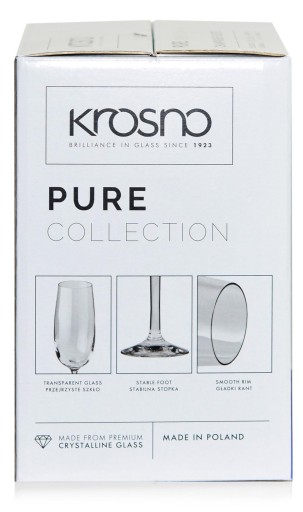 Zestaw 6 kieliszków do szampana firmy Krosno. Wykonane z wysokiej jakości szkła, klasyczne i wygodne w użyciu. Wysoka przejrzystość szkła pozwala na efektowne wyeksponowanie podawanego wina. Można bezpiecznie myć je w zmywarce. Doskonale sprawdzą się w profesjonalnej gastronomii, a także w domowym użytkowaniu. Zestaw zapakowany jest w szare pudełko.