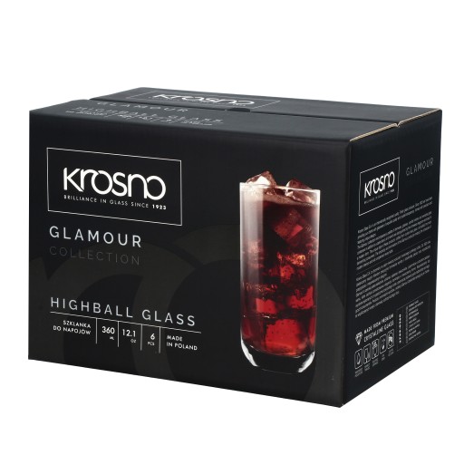 6 szklanek wysokich drink 360 ml Glamour KROSNO
