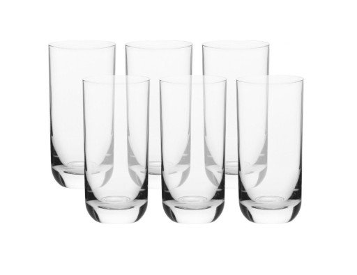 Zestaw 6 wysokich szklanek o pojemności 360 ml z serii Glamour firmy Krosno. Doskonale sprawdzą się do podawania w nich drinków, soków lub wody. Cylindryczny kształt szklanki osadzony na solidnym, grubszym dnie sprawia, że są stabilne i wygodne w uzyciu.