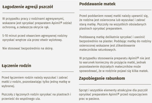 - oraz ograniczania agresji pszczół robotnic w tracie prac z rodzinami pszczelimi.