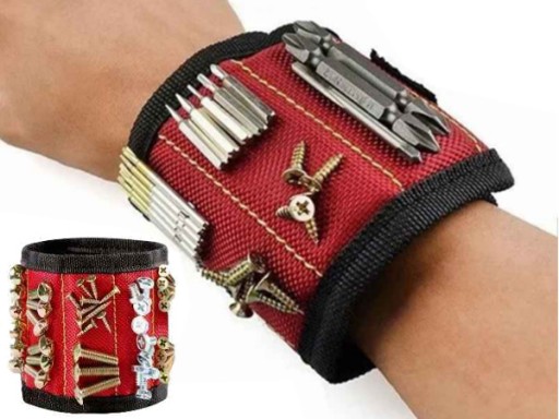 Opaska posiada w swoim wnętrzu silne magnesy neodymowe, które pozwalają przytrzymywać stalowe elementy takie jak wkręty, śruby, bity wiertła, czy gwoździe.