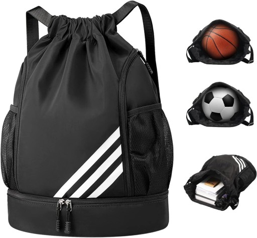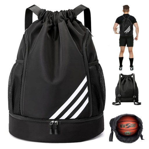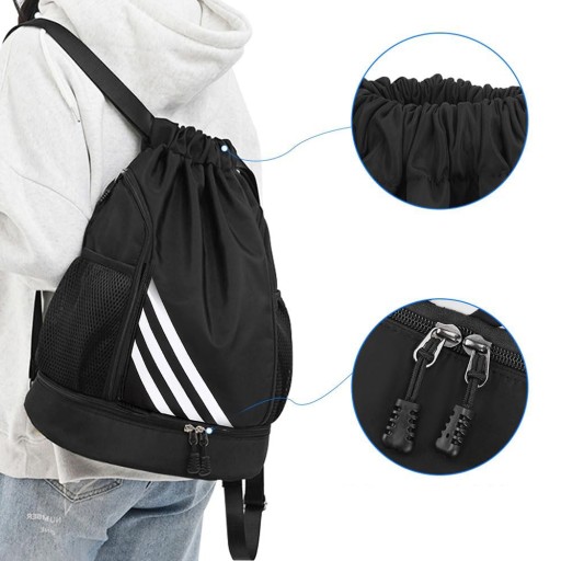 🏀 Plecak sportowy Torba gimnastyczna o dużej pojemności ściągana sznurkiem Wodoodporna z dolną przegrodą