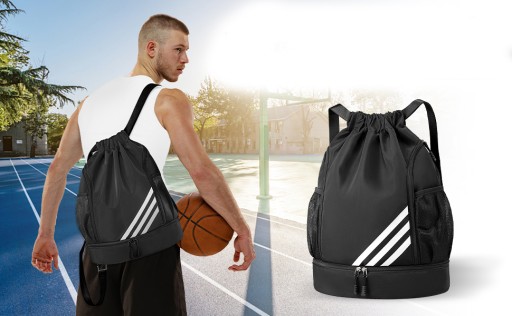 - Plecak ze sznurkiem. Kieszeń główna na większe przedmioty, takie jak piłki do koszykówki, piłki nożnej itp. Siatkowe kieszenie boczne z elastycznymi paskami po obu stronach plecaka sportowego pomieszczą bidony, parasole; przednia kieszeń pomieści chusteczki i przybory toaletowe. Torba ze sznurkiem Komora zapinana na zamek jest wygodna do przechowywania rzeczy bezpiecznych, czystych i zorganizowanych.