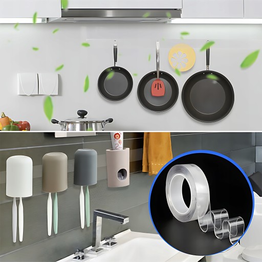 - Mocna i bezpieczna - Taśma Nano to produkt, który łączy w sobie SUPER MOC klejenia oraz BEZPIECZEŃSTWO, umożliwiając utrzymanie przedmiotów bez żadnych obaw. Co więcej, po odklejeniu nie pozostawia żadnych śladów