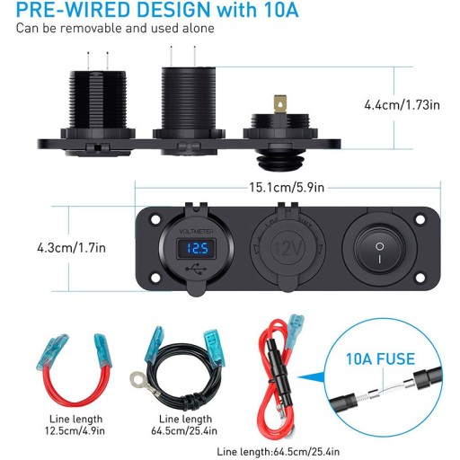 Szeroka kompatybilność--Pasuje do samochodu 12-24V, łodzi, morskiej, motocyklowej. SUV, ATV, kamper itp.