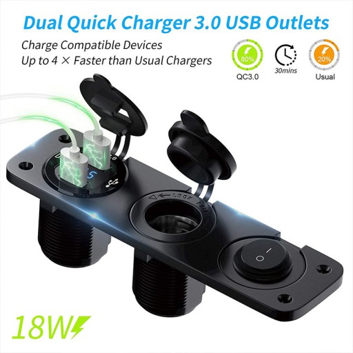 DIY 3 IN 1 Gniazdo ładowarki Panel Dual USB QC3.0 z LED Voltmeter+12V DV gniazdo zasilania +On-Off Przełącznik przełącznik