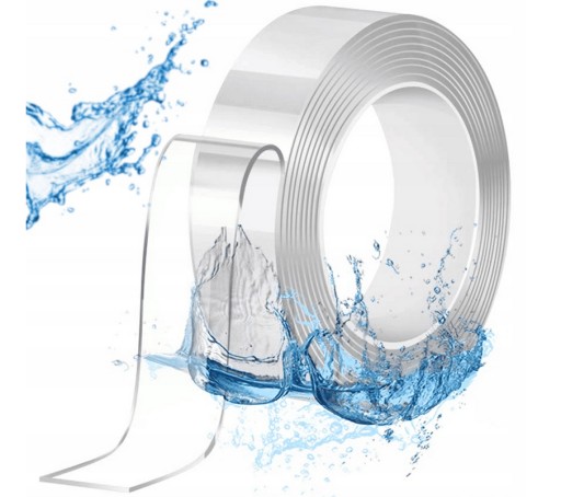 Taśma nano, dzięki wykonaniu z gumy akrylowej i mocnego żelu jest wodoodporna, dlatego możemy ją zdjąć z przyklejonego przedmiotu, przepłukać w wodzie i użyć ponownie. Ta dwustronna taśma, dzięki swojej odporności na wodę może być przyklejona również na mokrej ścianie w łazience, a także w kuchni.