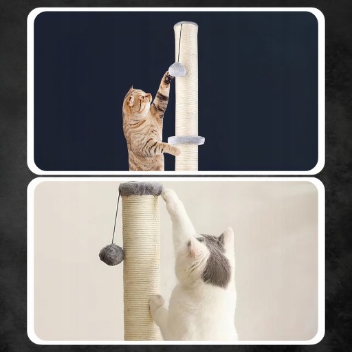 ✔️ Słupek do drapania✔️Nasz drapak dla kotów posiada solidny słupek pokryty naturalnym sznurem sizalowym, który stanowi idealne miejsce do ostrzenia pazurków. Sznur sizalowy jest trwały i wytrzymały, umożliwiając kotu skuteczne drapanie i utrzymanie pazurów w dobrej kondycji. Słupek do drapania pomaga zaspokoić naturalne instynkty drapieżnika u kota, jednocześnie chroniąc meble i inne przedmioty przed zniszczeniem.