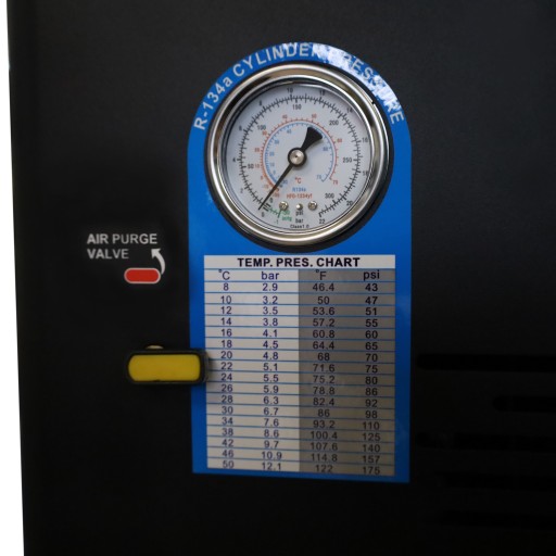 - Czytelne manometry wskazujące ciśnienie HP i LP oraz ciśnienie w zbiornikach.