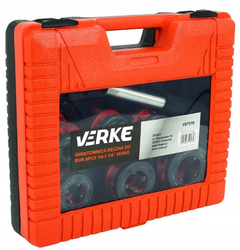 Wysokiej jakości zestaw do gwintowania rur. W skład zestawu wchodzi gwintownica ręczna z systemem grzechotkowym znacznie ułatwiającym pracę oraz przełącznik kierunku pracy. W skład zestawu wchodzi 6 głowic wymiennych w rożnych rozmiarach. Głowice wykonane są z bardzo trwałego i mocnego materiału. Zestaw zapakowany jest w plastikową walizkę wygodną w przenoszeniu oraz przechowywaniu wszystkich elementów.