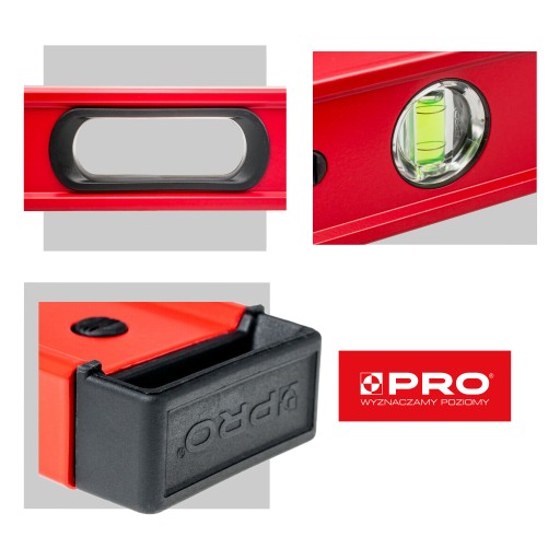 POZIOMNICA PRO900 HEAVY DUTY MALOWANA CZERWONA Z UCHWYTAMI 180CM, SYSTEM ŁATWEGO ODCZYTU ERS+, UCHWYT, NASADKA ANTYPOŚLIZGOWA ANTI-SHOCK CAP