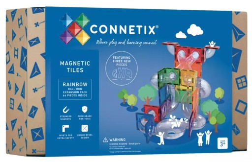 66-elementowy zestaw konstrukcyjny do budowy kulodromu z klocków magnetycznych w kolorach klasycznych Rainbow Connetix. Jest to zestaw rozszerzający i ze względu na brak prostych elementów toru najlepiej sprawdza się w połączeniu z jednym zestawów podstawowych: kulodromem Connetix Rainbow lub kulodromem Connetix Pastel, jednak liczba klocków i elementów kulodromu pozwala także za jego pomocą rozpocząć przygodę z Connetix.