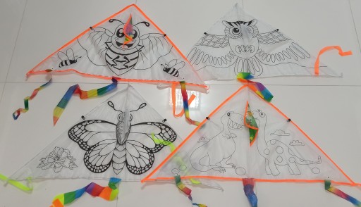 Oferowany latawiec jest ciekawą propozycją do wspólnej zabawy. Dziecko może samodzielnie ozdobić latawiec przy pomocy mazaków. Dzięki naniesionym konturom malowanie latawca jest samą przyjemnością.