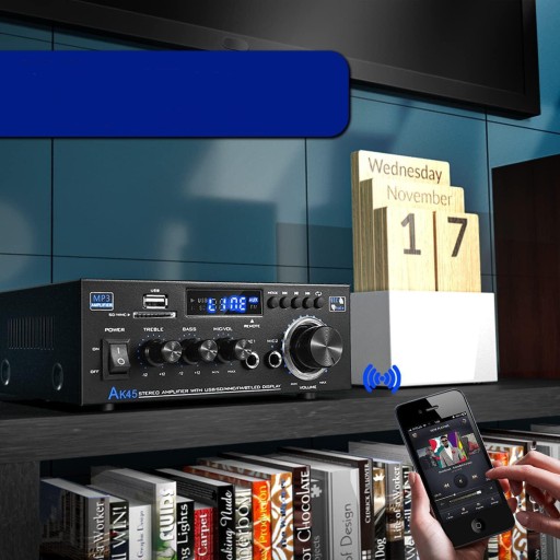 ✅ Wzmacniacz stereo AK45: w pełni zaktualizowana konstrukcja, moc znamionowa 40 W + 40 W, moc szczytowa 300 W + 300 W. Z funkcją mikrofonu, wysoka jakość dźwięku. Wbudowany zasilacz, obsługuje wejście prądu AC 90-240 V i wejście prądu DC 12 V/5 A, Plug and Play.
