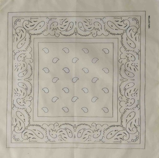Wymiary bandany to 54 cm x 54 cm.