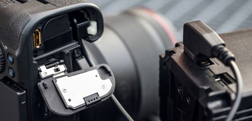 - umożliwia zasilanie aparatu z poziomu zewnętrznych akumulatorów V-lock (V-mount)
