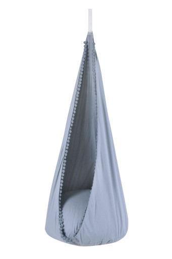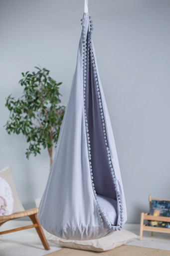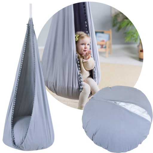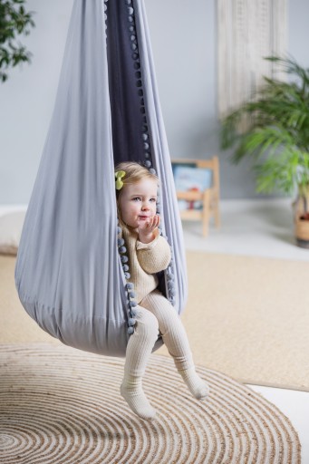 Hamak-kokon jest zaprojektowany z myślą o pełnym bezpieczeństwie i komforcie dziecka. Mocny uchwyt górny oraz dwuwarstwowa tkanina z certyfikowanej bawełny zapewniają stabilność podczas bujania. Wewnątrz znajduje się miękka, antyalergiczna poduszka, którą można łatwo wyjąć i prać. Huśtawka wytrzymuje obciążenie do 80 kg, co czyni ją trwałą i bezpieczną atrakcją na długi czas.