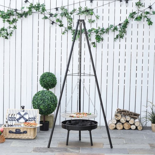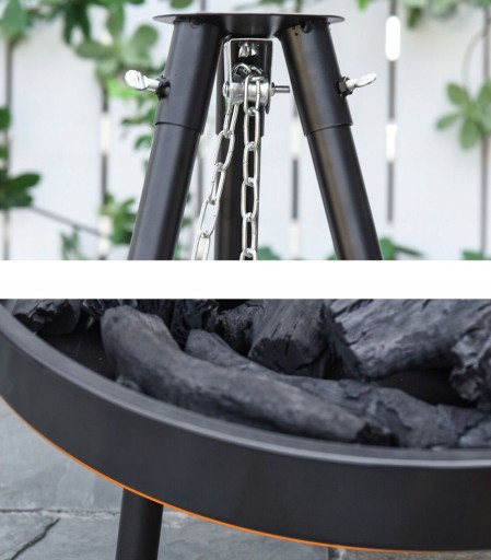 Elegancki i trwały grill wiszący na trójnogu z paleniskiem to idealne rozwiązanie dla osób, które nie mają wyznaczonego miejsca na ognisko w ogrodzie a cenią biwakową atmosferę.