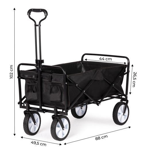 Wielozadaniowy wózek doskonale sprawdzi się w ogrodzie, czy na wakacjach. Umożliwia transportowanie wszelkiego rodzaju niewielkiego ładunku.