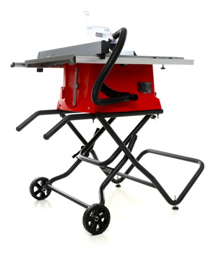 - Dzięki niewielkim rozmiarom i składanym stolikom dodatkowym piła jest łatwa w transporcie i przechowywaniu, dzięki czemu doskonale sprawdza się w pracach usługowych poza warsztatem.