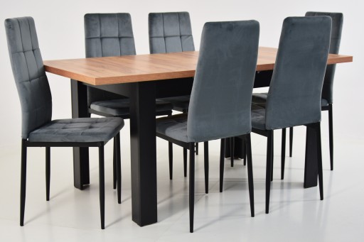 SOLIDNY Rozkładany stół 80x140/180 DĄB i 6 SZARYCH krzeseł DO JADALNI SALON