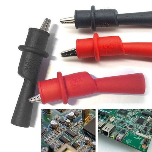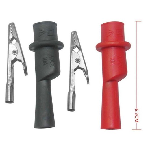 W zestawie znajdują się dwie sztuki tych zacisków, co pozwala na równoczesne ustanowienie kilku połączeń, idealne przy testowaniu obwodów lub prototypowaniu.