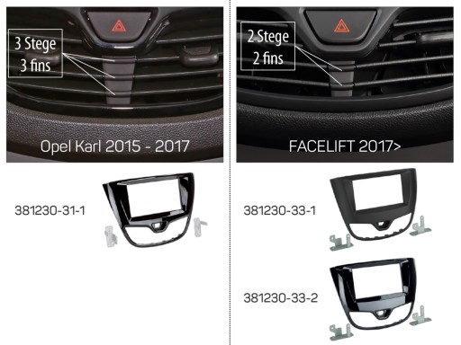 Ramka radiowa 2 DIN Opel Karl 2017 -> czarny błyszczący