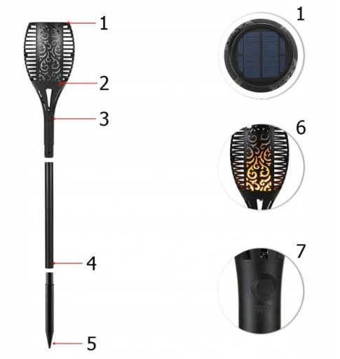 ✅ Do lampy dołączone są elementy ułatwiające montaż w ziemi. Regulacja wysokości pochodni jest możliwa dzięki załączonej przedłużce.