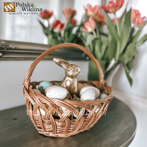 - Zastosowanie: koszyczek wiklinowy to idealny kosz do święcenia w czasie Wielkanocy. Dzięki swojej lekkości może być również używany przez najmłodszych. Kosz można przyozdobić ozdobną serwetką czy liśćmi bukszpanu – wszystko to wyraża głęboką świąteczną symbolikę, wartość chwil spędzanych z rodziną oraz dbałość o tradycję, łączącą pokolenia. Po świętach możesz wykorzystać koszyczek jako ozdoba stołu wyłożona wiosennymi kwiatami lub inne dekoracje w Twoim domu.