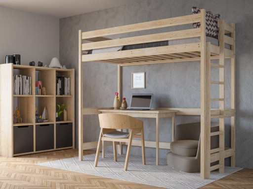 Konstrukcja z wysokiej jakości drewna sosnowego, dzięki czemu nasze łóżka są stabilne i wytrzymałe.
