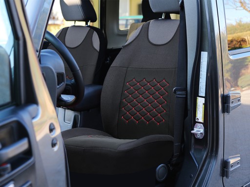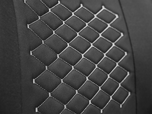 - Materiał wykończeniowy - dzianina charakteryzuje się elastycznością oraz podwyższoną odpornością na ścieralność oraz zużycie. Struktura materiału pozwala na lepsze dopasowanie pokrowców do oryginalnej tapicerki.