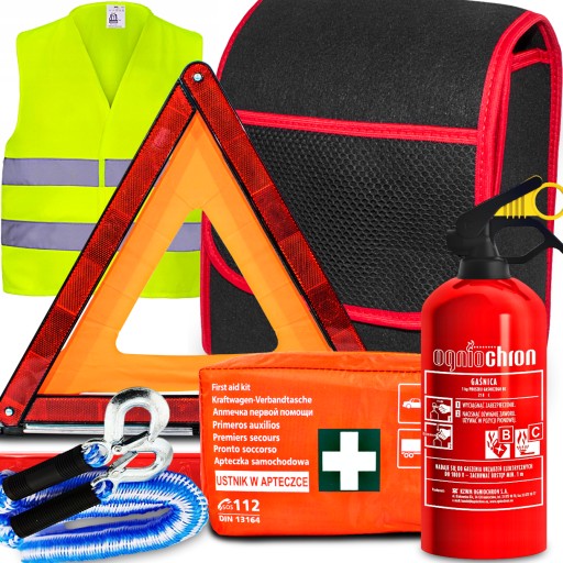 APTECZKA | GAŚNICA 1KG | TRÓJKĄT OSTRZEGAWCZY | KAMIZELKA ODBLASKOWA | LINKA HOLOWNICZA | TORBA ORGANIZER