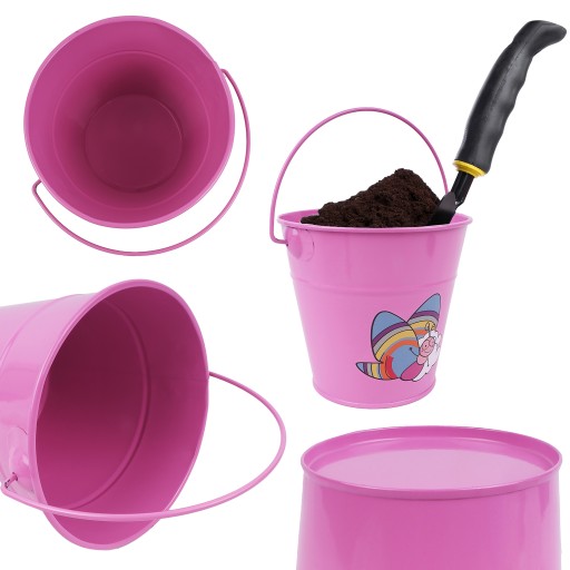 WIADRO WIADERECZKO DLA DZIECI 1,2L RÓŻOWE METALOWE