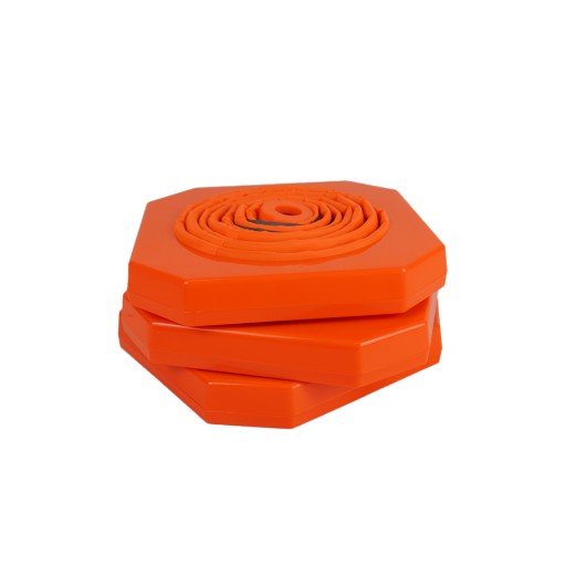 Plastikowa podstawka zapewnia stabilne ustawienie pachołka oraz chroni go przed podmuchami wiatru. Wyposażony został w dwa pasy odblaskowe dzięki czemu widoczny jest z daleka.