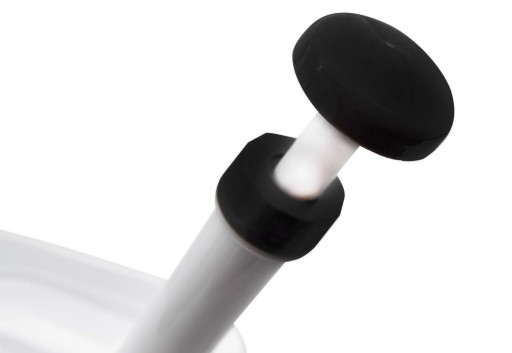 Sposób użycia jest bardzo prosty! Wystarczy tylko wsypać owoce na tacę drylownicy, nakierować je na rowek i wcisnąć tłoczek, który z łatwością usunie niechciane pestki.
