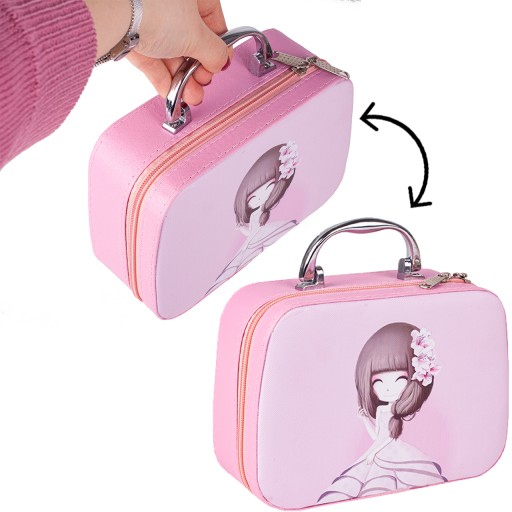 Całość zestawu została umieszczona w prześlicznym kuferku. Kuferek wyposażony jest w wygodny uchwyt, dzięki czemu dziecko będzie mogło zabrać go ze sobą wszędzie.