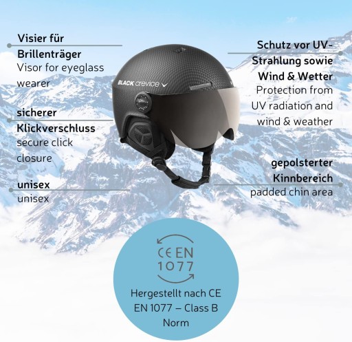 Kask narciarski firmy BLACK CREVICE łączy bezpieczeństwo z najwyższą jakością. Zapewnia ochronę przed promieniowaniem UV, ale także przed śniegiem i złymi warunkami pogodowymi. Wykonany jest z poliwęglanu odpornego na zarysowania i posiada powłokę zapobiegającą parowaniu. Wielofunkcyjny system wentylacyjny z 12 otworami zapewnia przyjemny klimat hełmu.