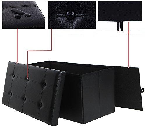 Mocna i trwała funkcja - wykonana ze standardowego MDF E1, doskonałej sztucznej skóry i wyściełanej poduszki, miękkiej i wilgoci. Bez deformacji Ukryte miejsce do przechowywania - ładunki pamięci wewnątrz jako poręczne skrzynkę pamięci. Przestronna przestrzeń 86 l, aby ukryć sundries, trzymać ubrania, zabawki, czasopisma, koce, pościel idealnie Podwójne jako wygodne siedzenie - wyściełane pianką o wysokiej gęstości, miękkie i doskonałe solidne do siedzenia. Spełniają certyfikat SGS, maksymalna pojemność wagi wynosi do 300 kg Niezwykle łatwe do skonfigurowania - chodź na płasko, po prostu poświęć kilka sekund. Wspadowy projekt umożliwia spakowanie, gdy nie jest używany Prosty i dekoracyjny wygląd - delikatny i wszechstronny kawałek ławki można użyć pudełka nocnego, regału lub stołka, idealnie pasuje do mebli w salonie, sypialni lub salonie Specyfikacje: - Wymiary: Około 76 x 38 x 38 cm (W X H X D) - Wymiary wewnętrzne: 73 x 34 x 33,5 cm (W X H X D) - Materiał: MDF + Faux skóra - Kolor: Czarny - Waga: 6,6 kg Pakiet zawartość: - 1 x magazynowanie otomana