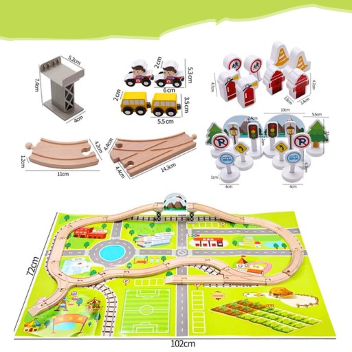 - SPECYFIKACJA – materiał: drewno; ilość elementów w zestawie: 80; szerokość toru: 4cm; ; waga z opakowaniem: 2,27kg.