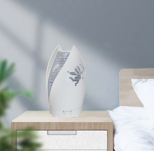 Nawilżacz powietrza, który może służyć jako lampka nocna - posiada podświetlenie LED 6 kolorami na pilot