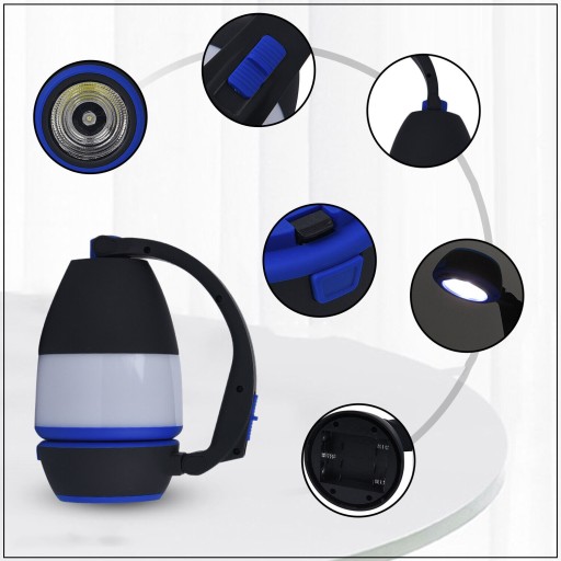 Moc: lampa kempingowa + lampa stołowa: 10W, latarka: 3W.