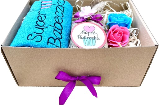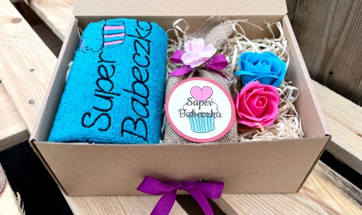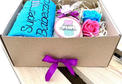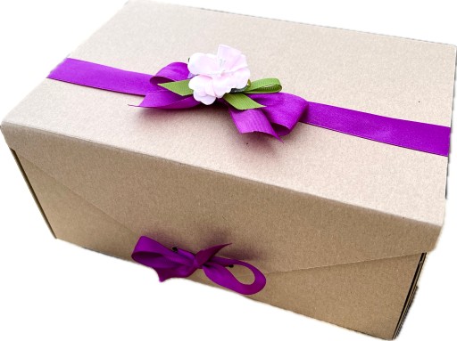 - eleganckie opakowanie - zamykane pudełko przewiązane kokardą i udekorowane kwiatkami,